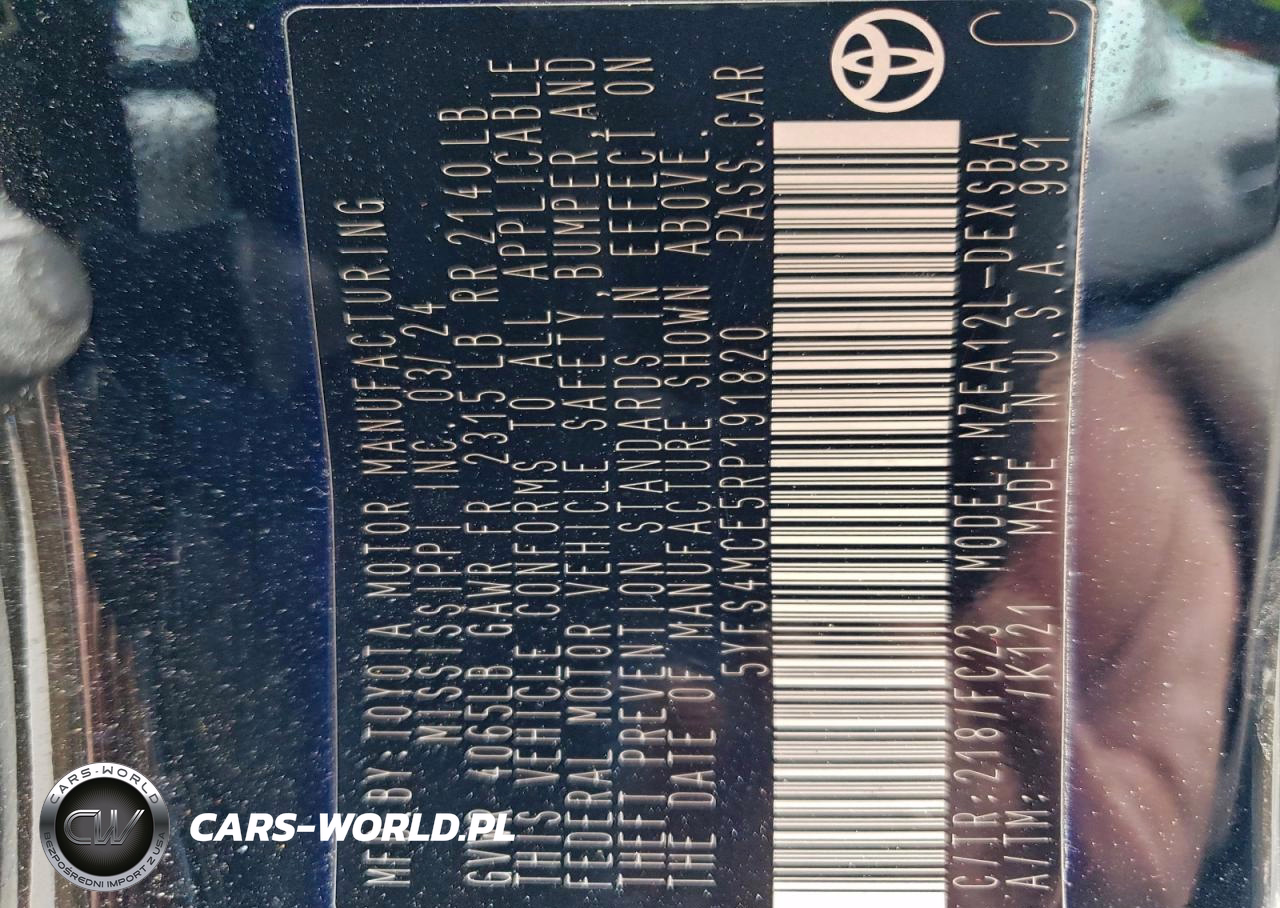 Copart Nr: C-95420725 VIN: 5YFS4MCE5RP191820 Port: Elizabeth, NJ