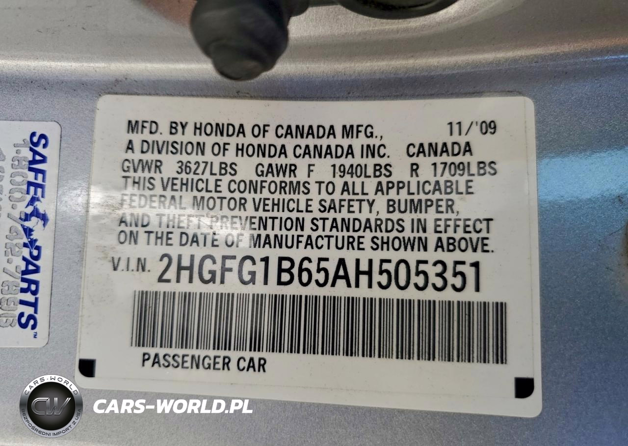 Copart Nr: C-95486665 VIN: 2HGFG1B65AH505351 Port: Los Angeles, CA