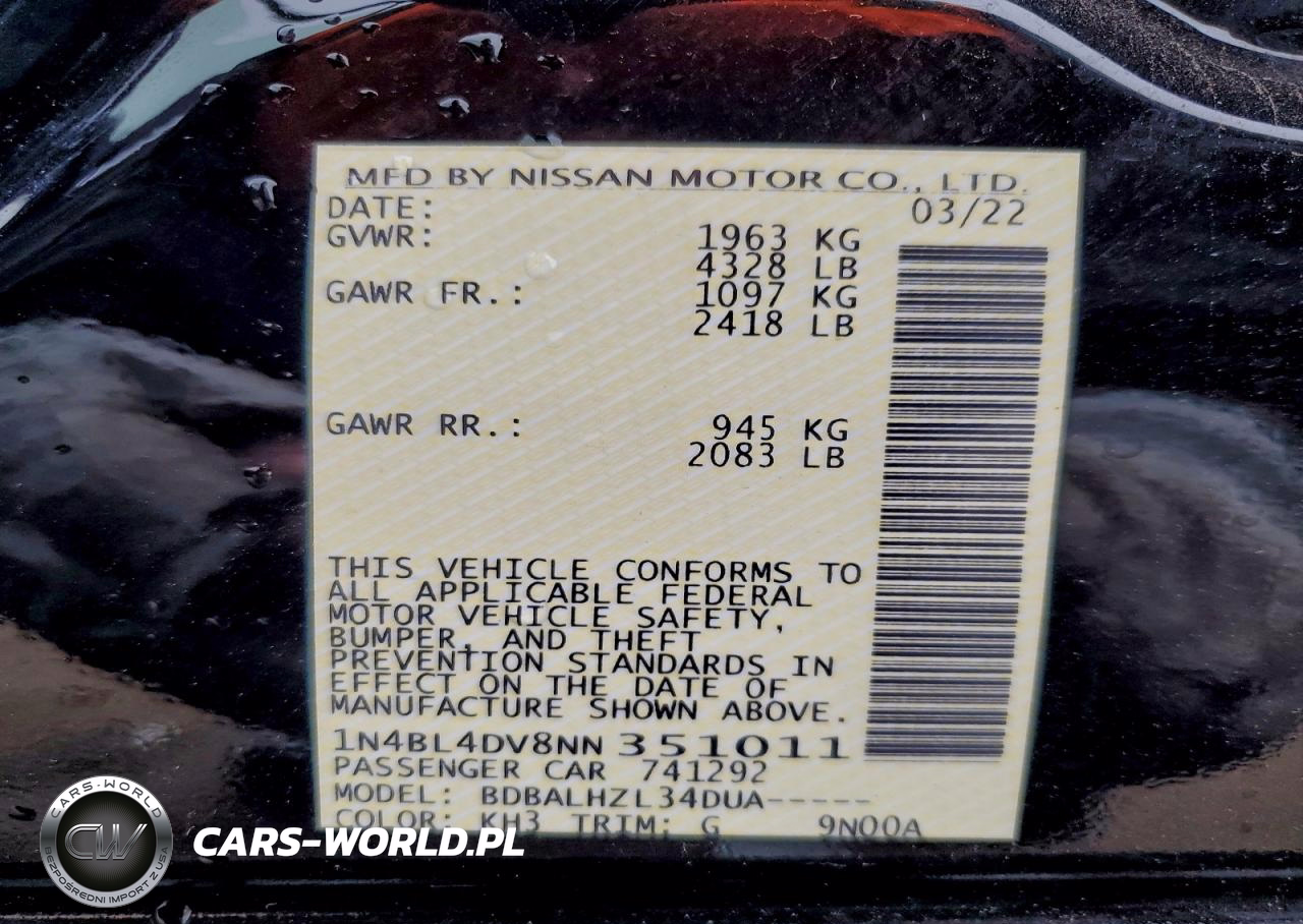 Copart Nr: C-95495115 VIN: 1N4BL4DV8NN351011 Port: Houston, TX