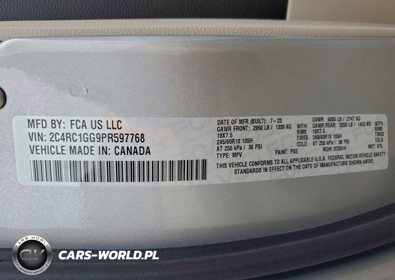 Copart Nr: C-95566205 VIN: 2C4RC1GG9PR597768 Port: Savannah, GA