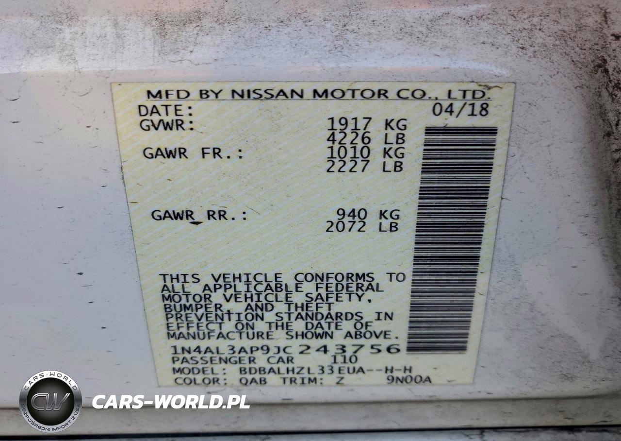 Copart Nr: C-95902715 VIN: 1N4AL3AP9JC243756 Port: Houston, TX