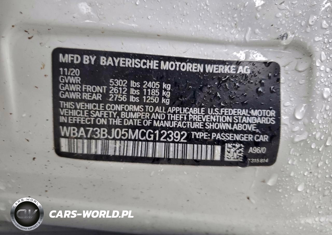 Copart Nr: C-96014125 VIN: WBA73BJ05MCG12392 Port: Los Angeles, CA