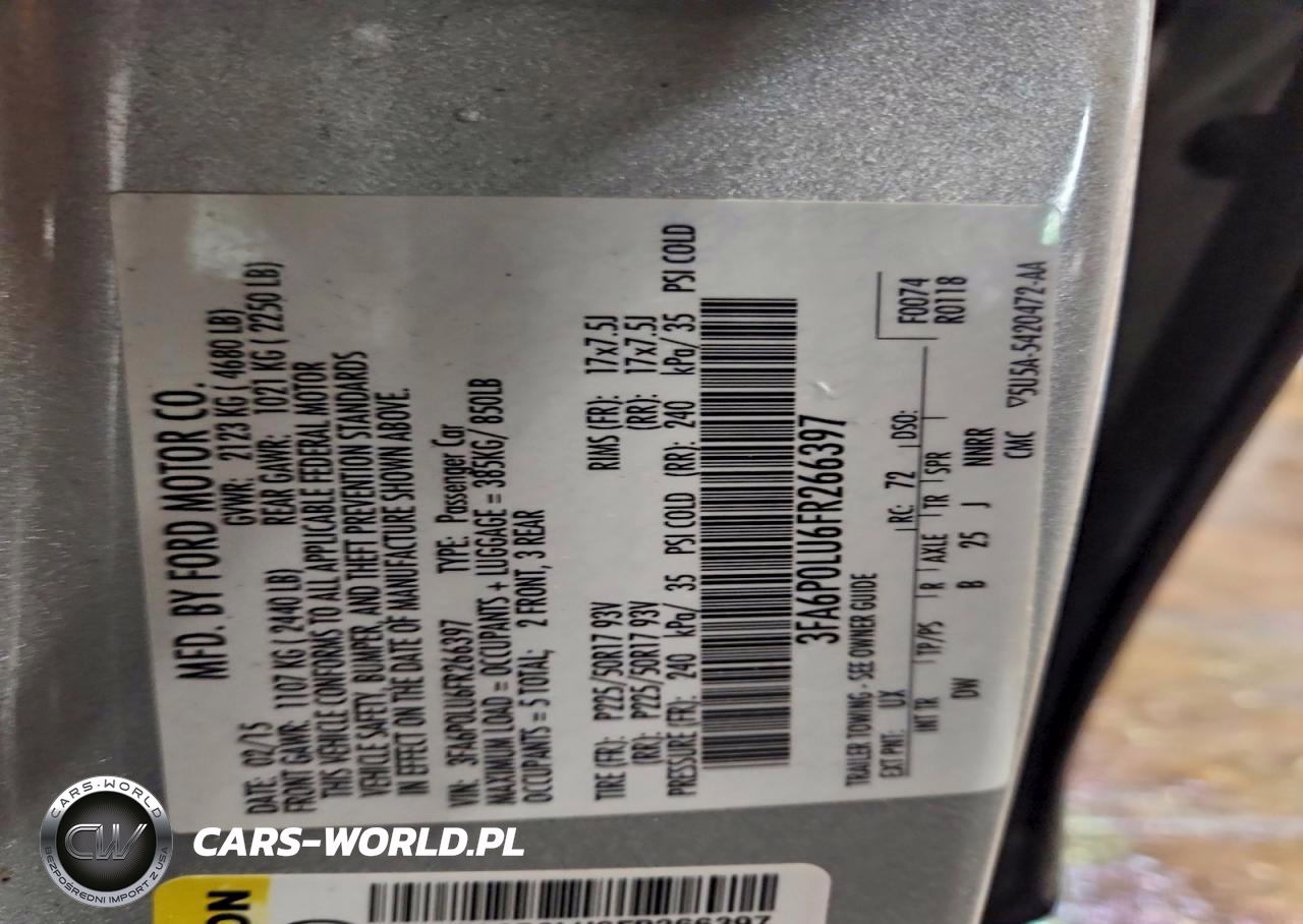 Copart Nr: C-96175985 VIN: 3FA6P0LU6FR266397 Port: Indianapolis, IN