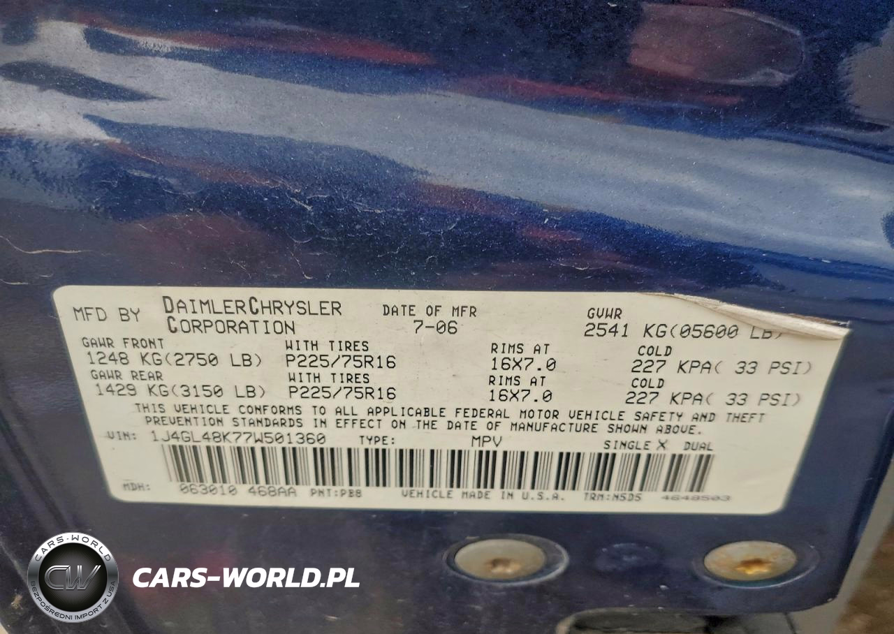 Copart Nr: C-96250125 VIN: 1J4GL48K77W501360 Port: Indianapolis, IN
