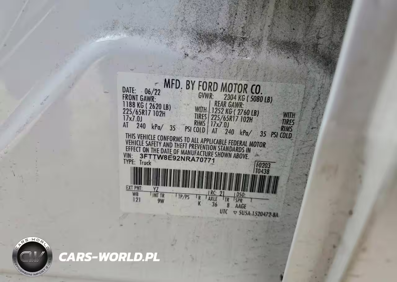 Copart Nr: C-96305515 VIN: 3FTTW8E92NRA70771 Port: Savannah, GA