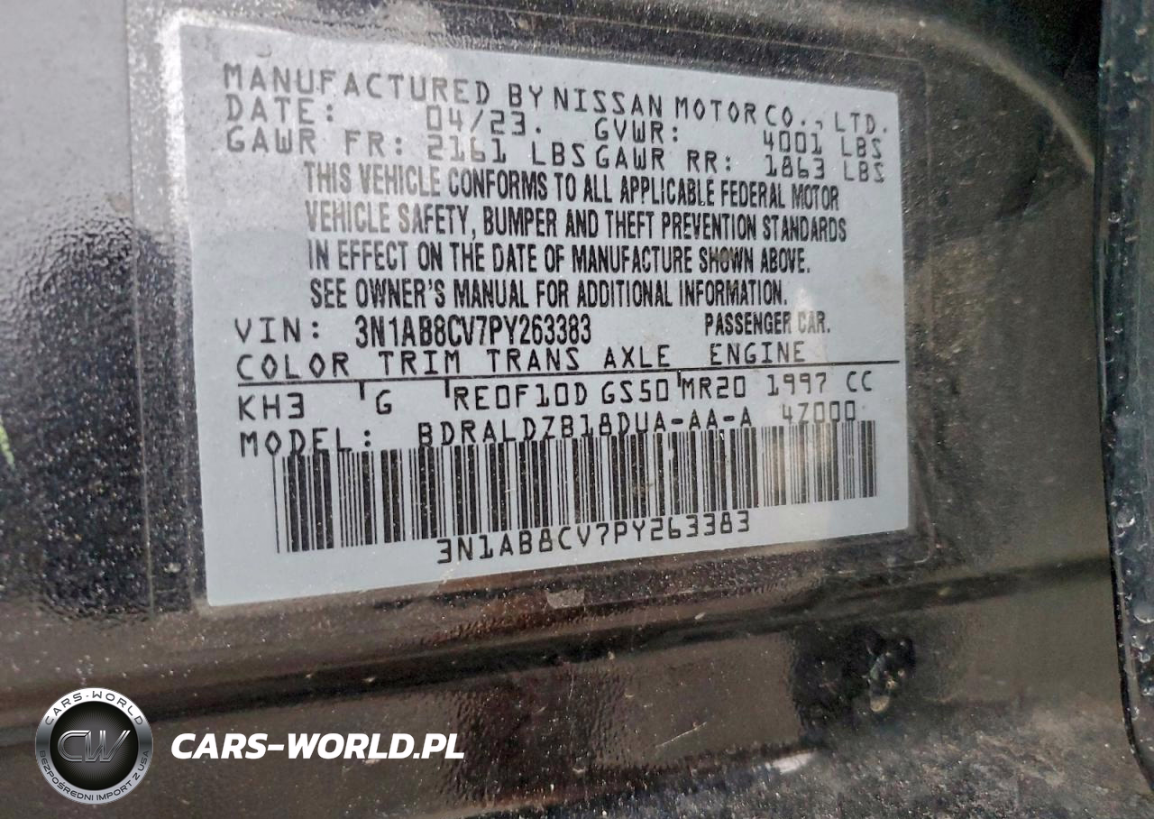 Copart Nr: C-96317735 VIN: 3N1AB8CV7PY263383 Port: Elizabeth, NJ