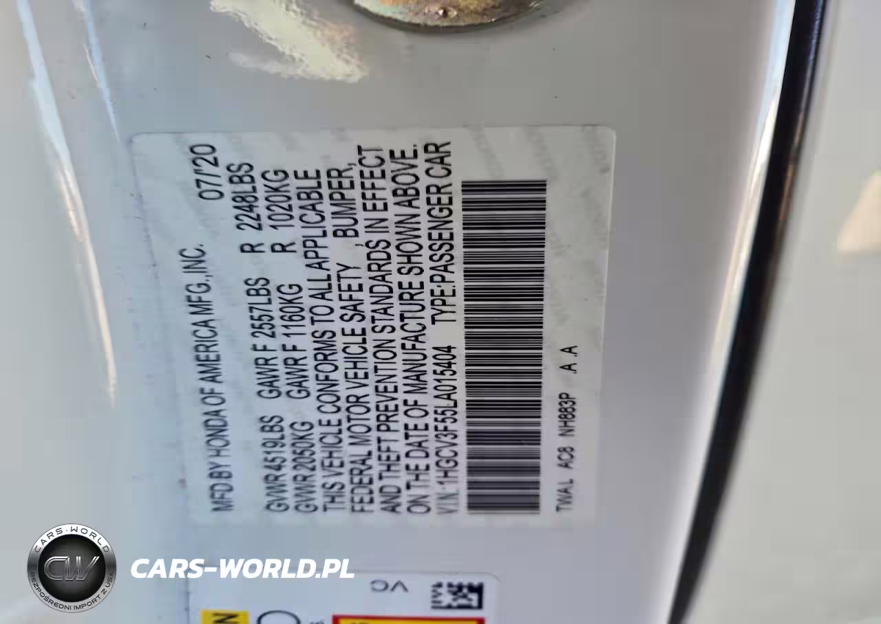 Copart Nr: C-96355375 VIN: 1HGCV3F55LA015404 Port: Los Angeles, CA