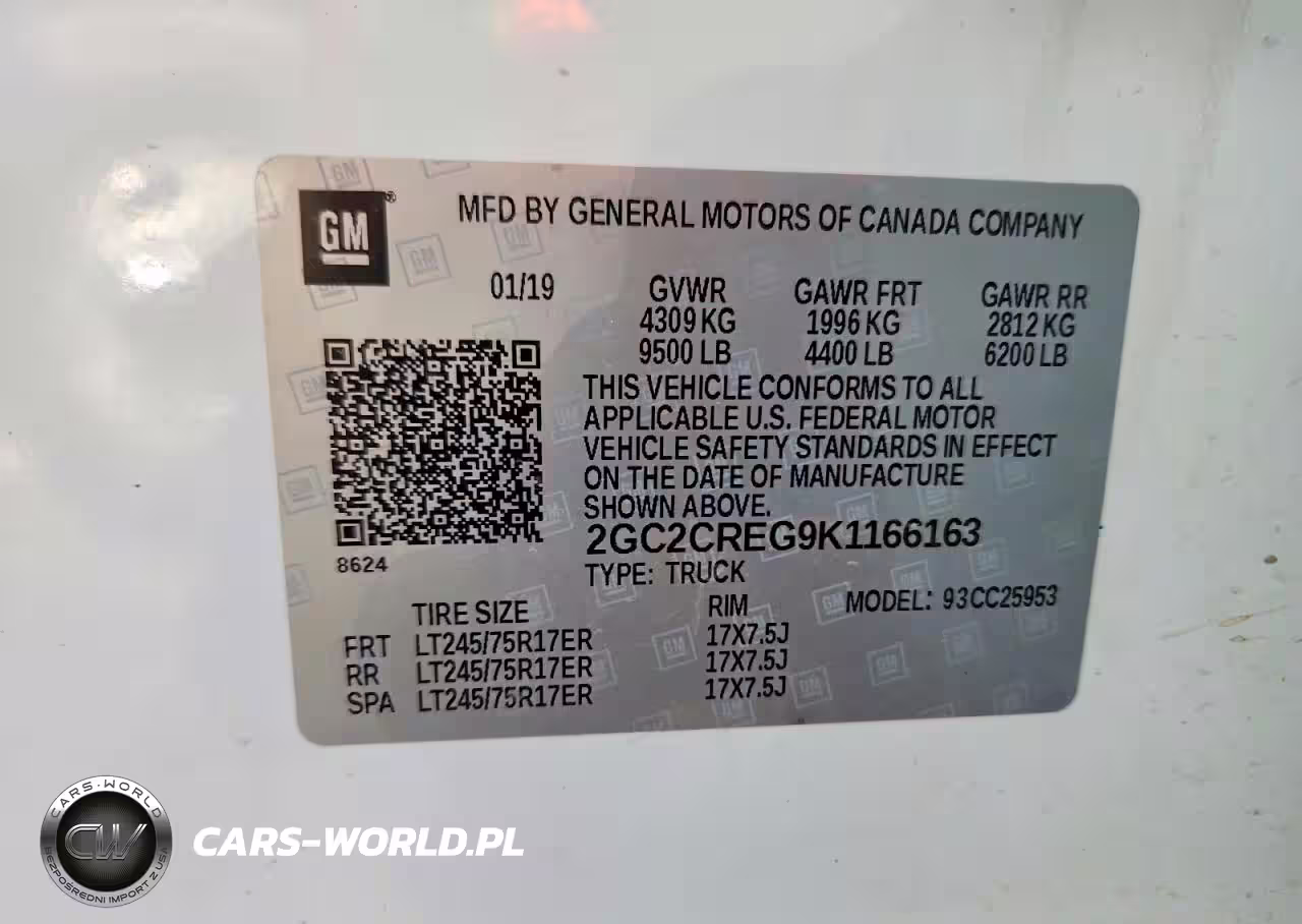 Copart Nr: C-96486385 VIN: 2GC2CREG9K1166163 Port: Houston, TX