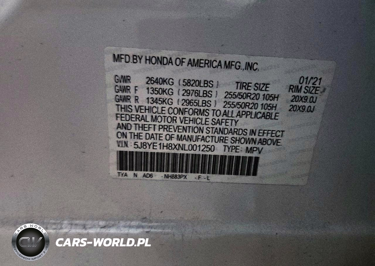 Copart Nr: C-96508095 VIN: 5J8YE1H8XNL001250 Port: Savannah, GA