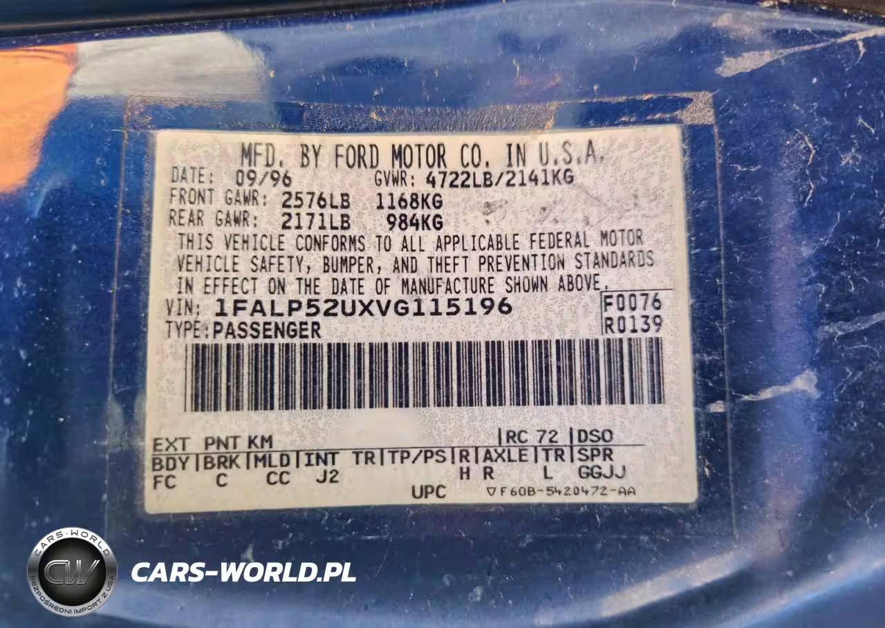 Copart Nr: C-96582945 VIN: 1FALP52UXVG115196 Port: Los Angeles, CA