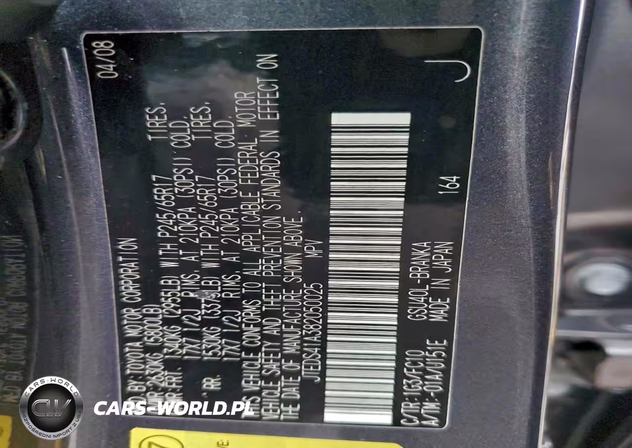 Copart Nr: C-96898075 VIN: JTEDS41A382050025 Port: Indianapolis, IN