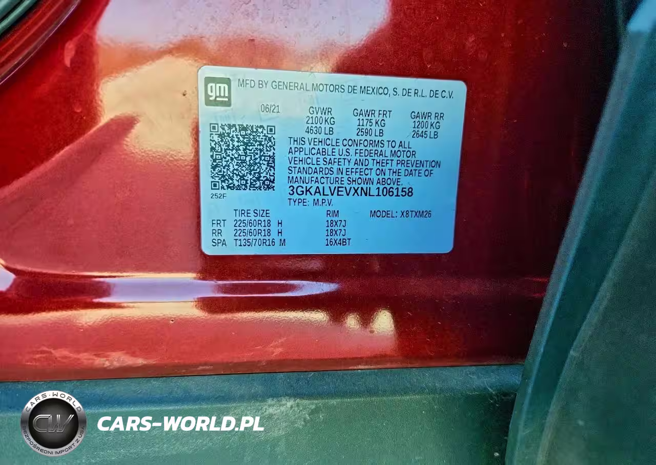 Copart Nr: C-96929545 VIN: 3GKALVEVXNL106158 Port: Savannah, GA