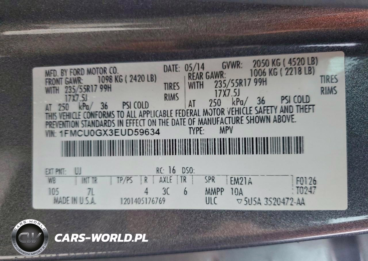 Copart Nr: C-97084525 VIN: 1FMCU0GX3EUD59634 Port: Savannah, GA