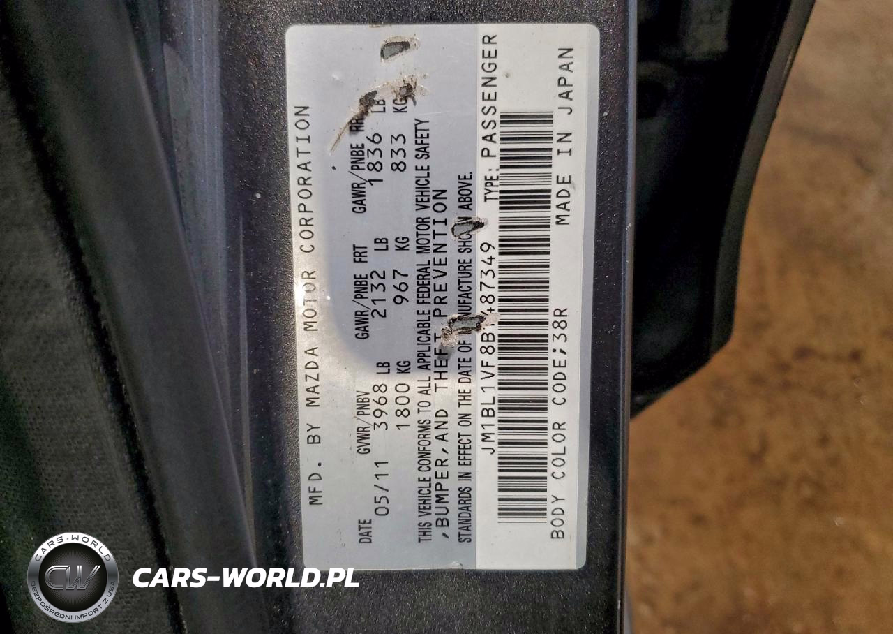 Copart Nr: C-97220565 VIN: JM1BL1VF8B1487349 Port: Elizabeth, NJ