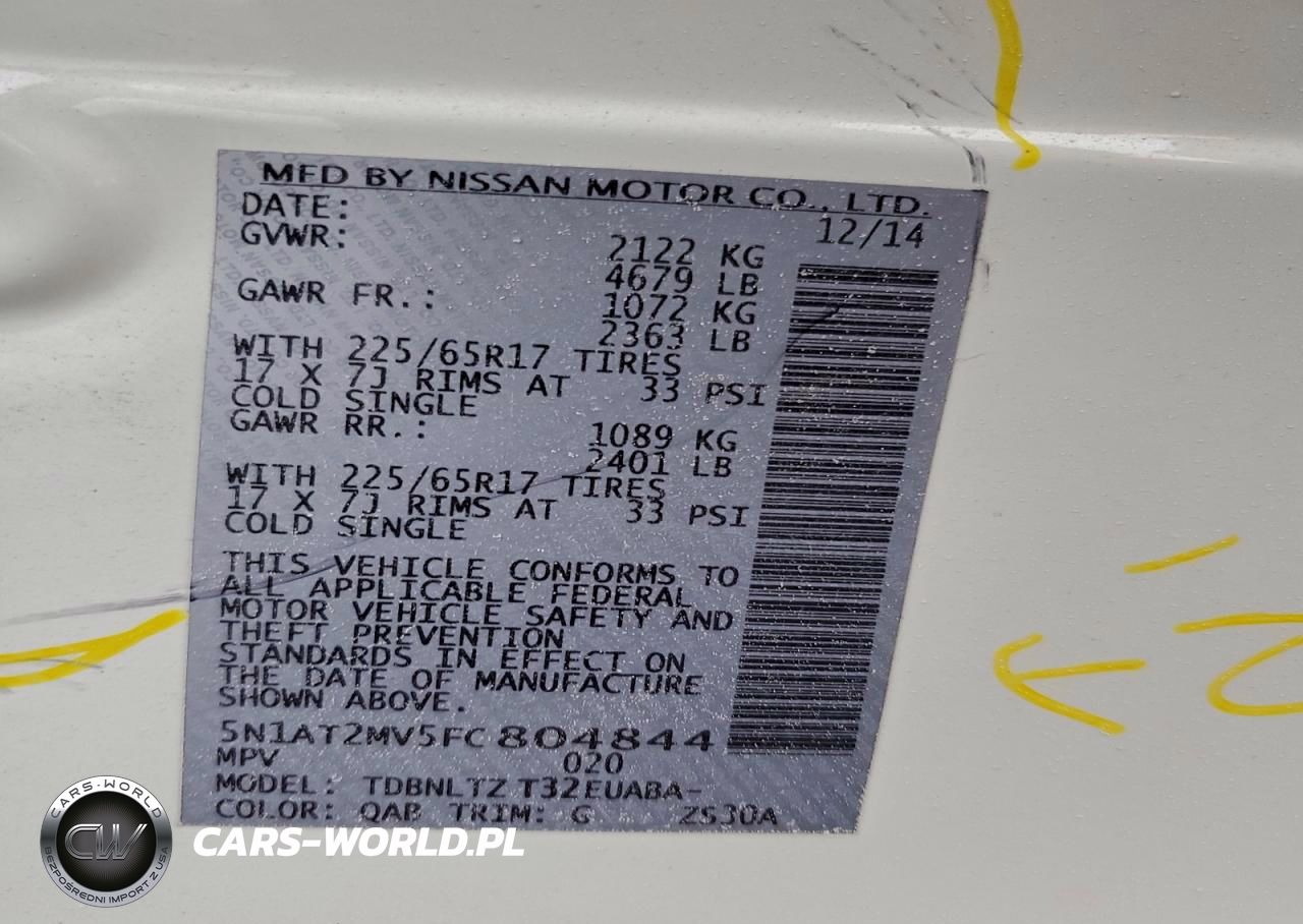 Copart Nr: C-97343535 VIN: 5N1AT2MV5FC804844 Port: Indianapolis, IN