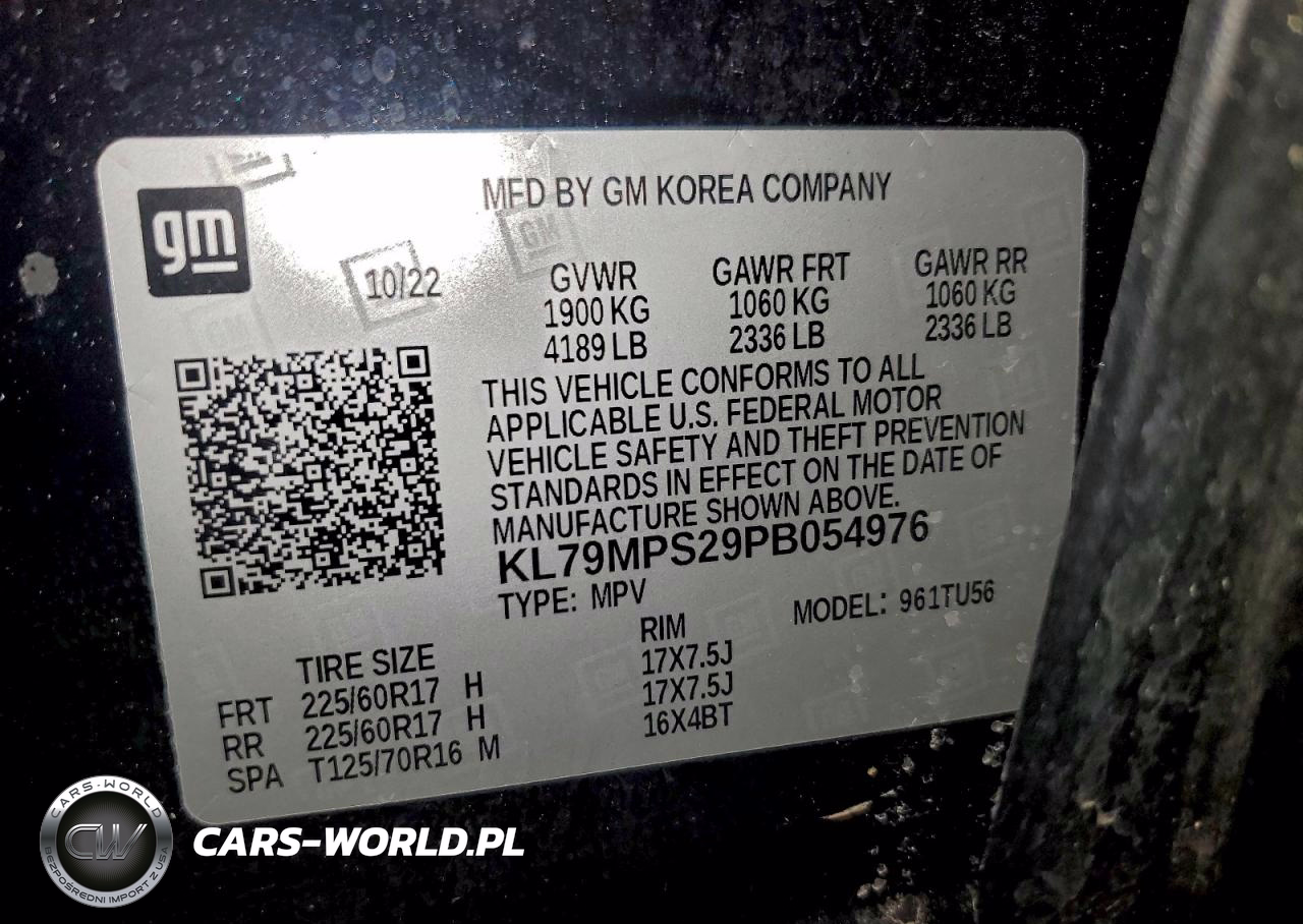 Copart Nr: C-97348375 VIN: KL79MPS29PB054976 Port: Elizabeth, NJ