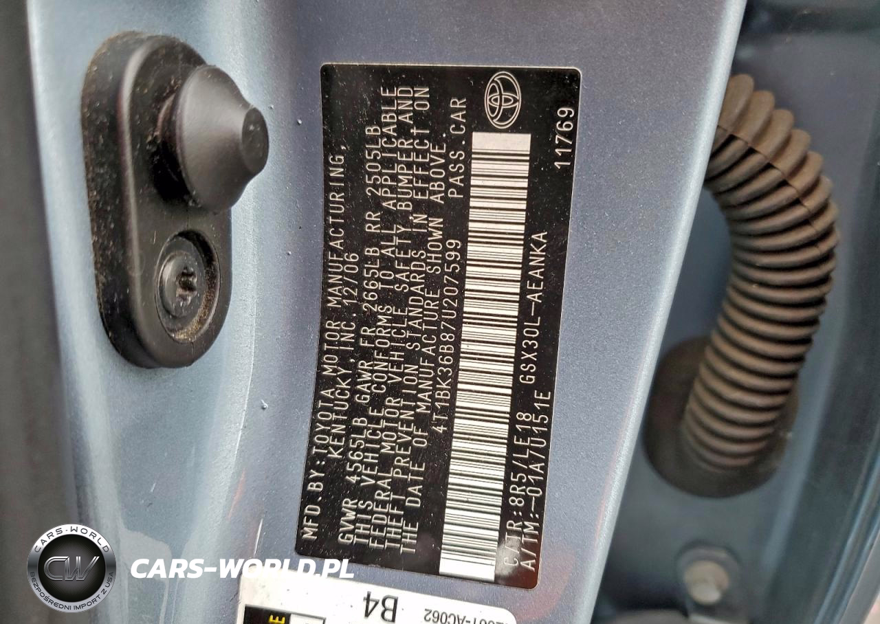 Copart Nr: C-97360955 VIN: 4T1BK36B87U207599 Port: Los Angeles, CA