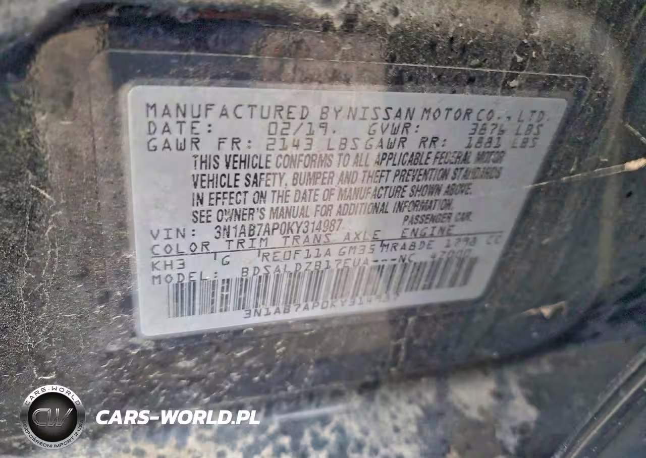 Copart Nr: C-97664375 VIN: 3N1AB7AP0KY314987 Port: Indianapolis, IN