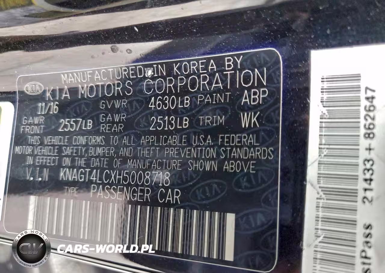 Copart Nr: C-97713365 VIN: KNAGT4LCXH5008718 Port: Los Angeles, CA
