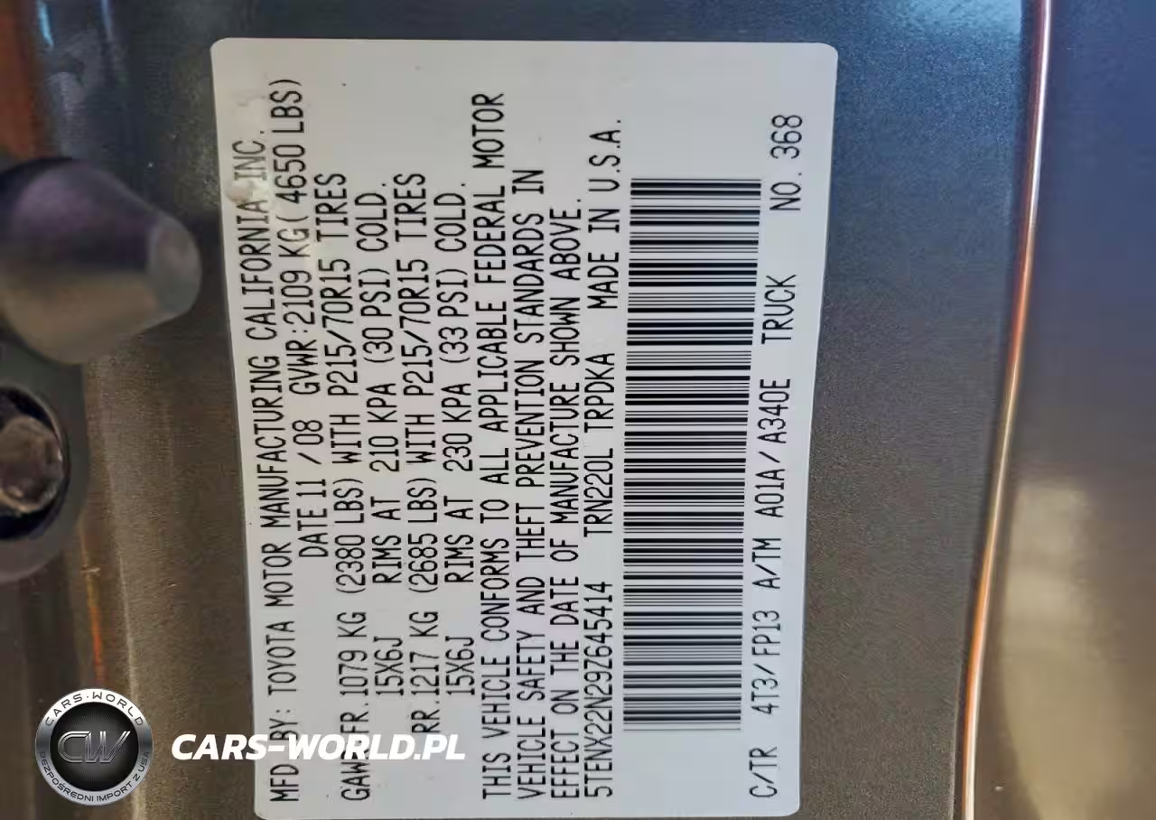 Copart Nr: C-97921635 VIN: 5TENX22N29Z645414 Port: Elizabeth, NJ