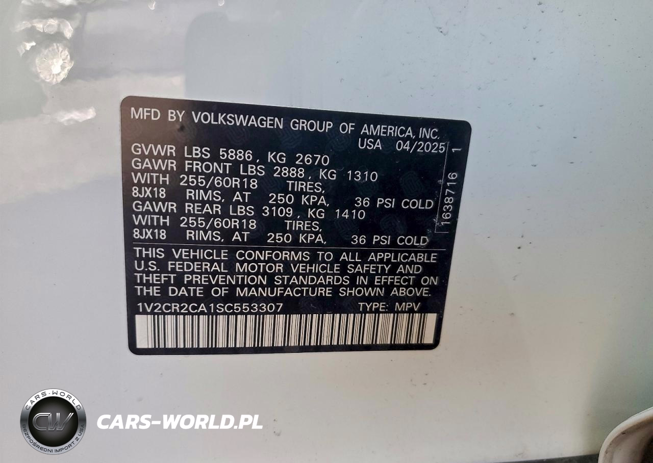 Copart Nr: C-97982985 VIN: 1V2CR2CA1SC553307 Port: Elizabeth, NJ