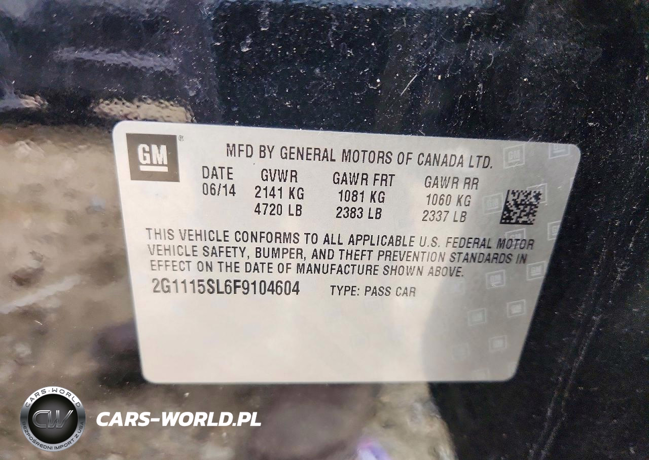 Copart Nr: C-98009075 VIN: 2G1115SL6F9104604 Port: Elizabeth, NJ
