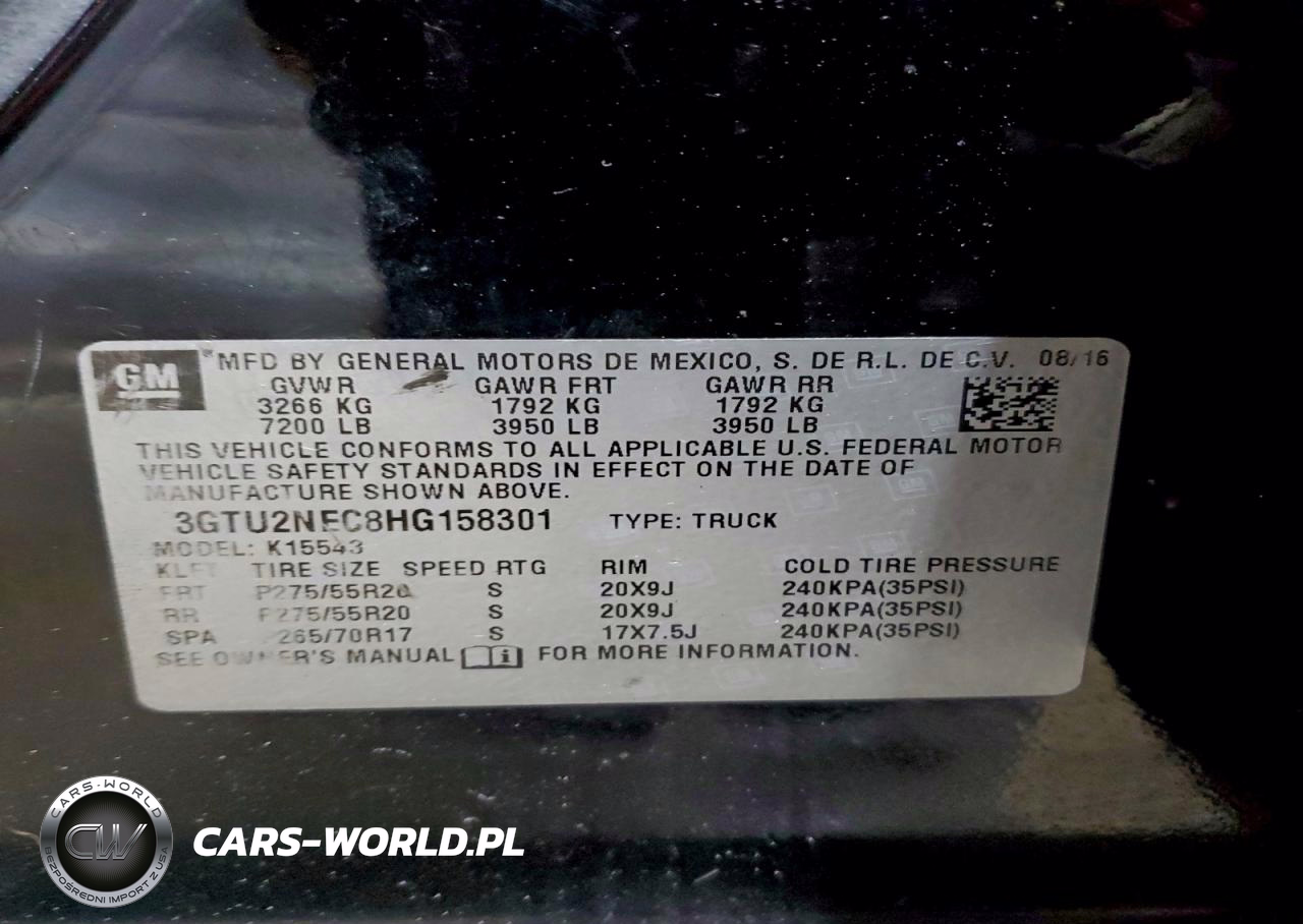 Copart Nr: C-98076235 VIN: 3GTU2NEC8HG158301 Port: Elizabeth, NJ