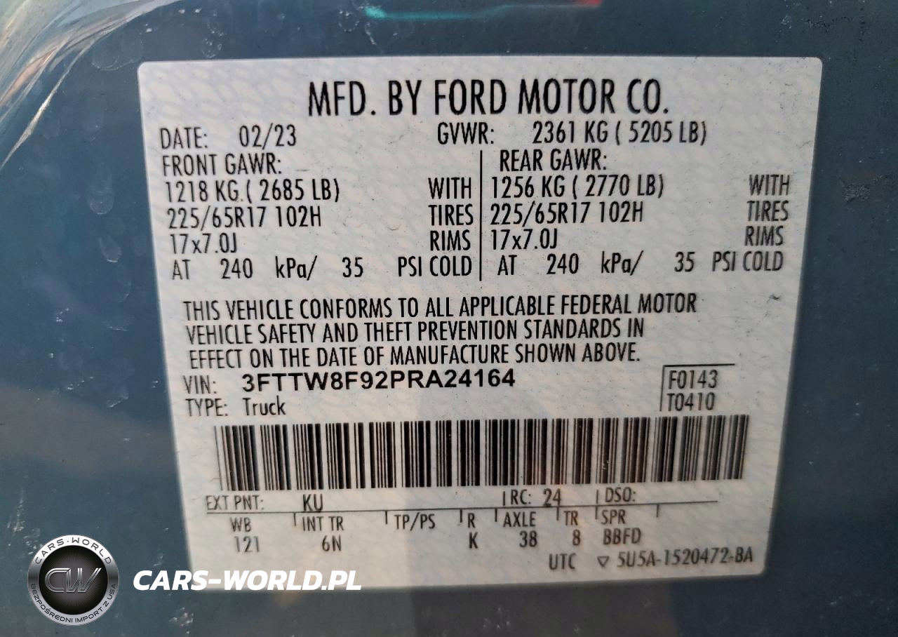 Copart Nr: C-98173645 VIN: 3FTTW8F92PRA24164 Port: Elizabeth, NJ