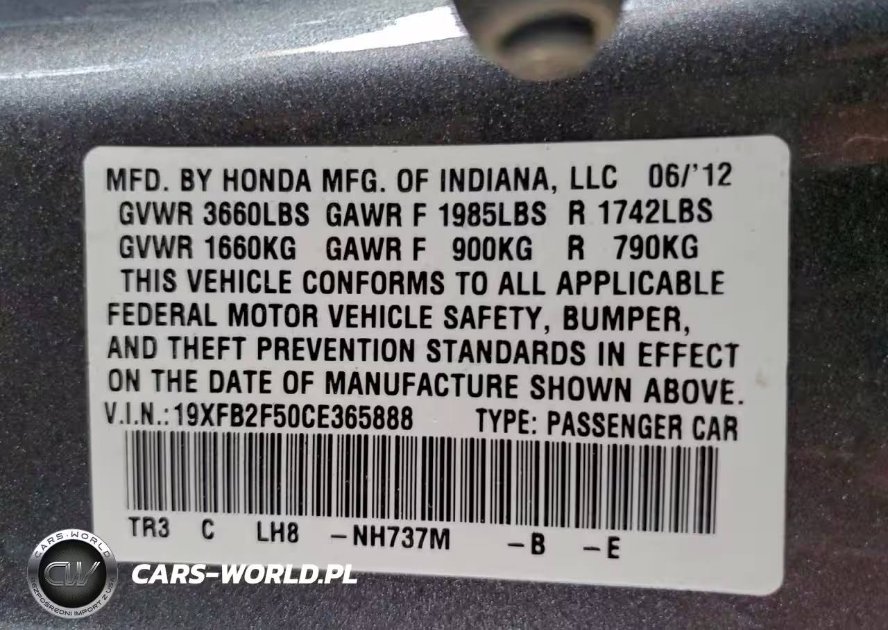 Copart Nr: C-98178695 VIN: 19XFB2F50CE365888 Port: Los Angeles, CA