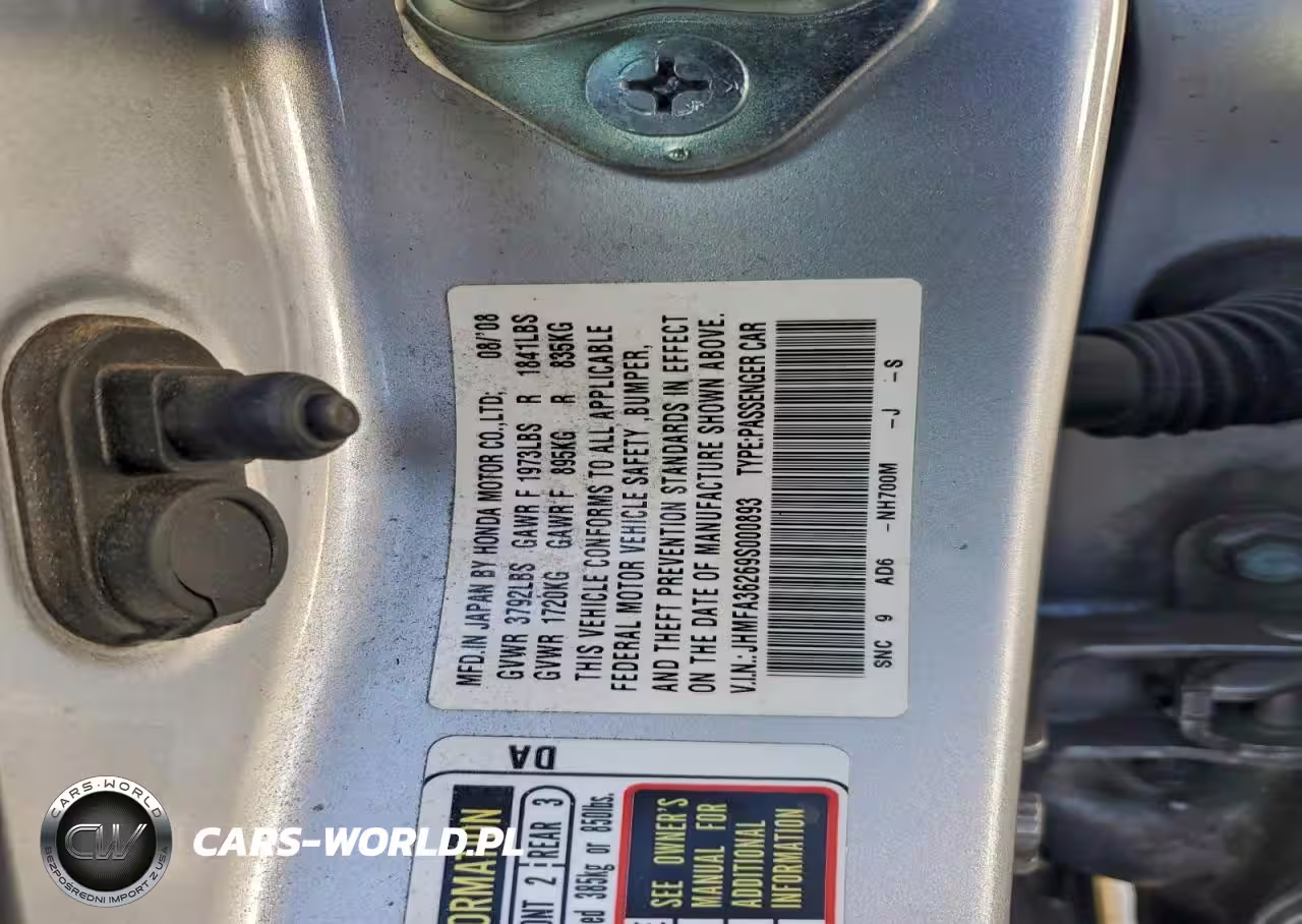 Copart Nr: C-98228535 VIN: JHMFA36269S000893 Port: Houston, TX
