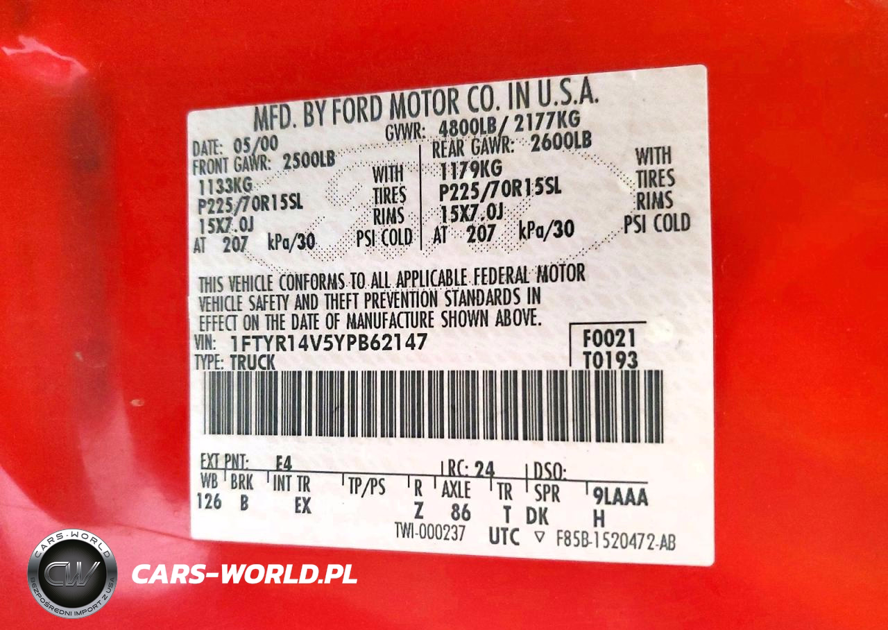Copart Nr: C-98269295 VIN: 1FTYR14V5YPB62147 Port: Los Angeles, CA