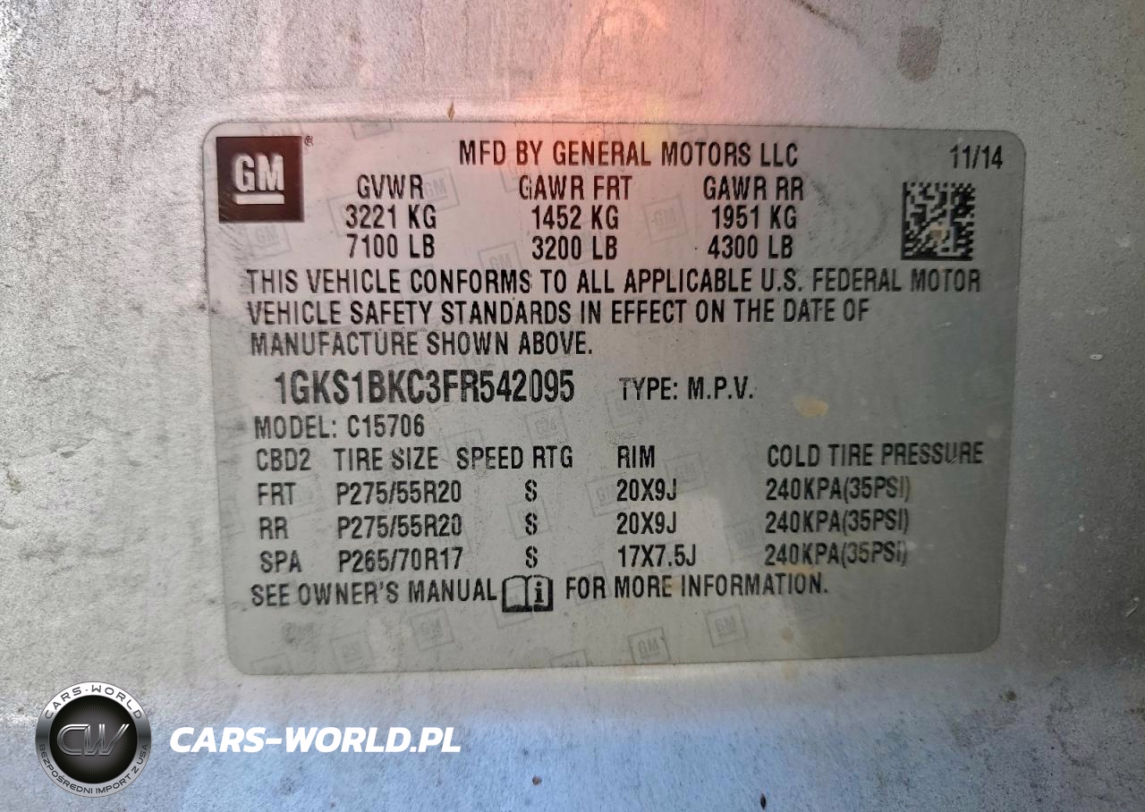 Copart Nr: C-98370795 VIN: 1GKS1BKC3FR542095 Port: Savannah, GA