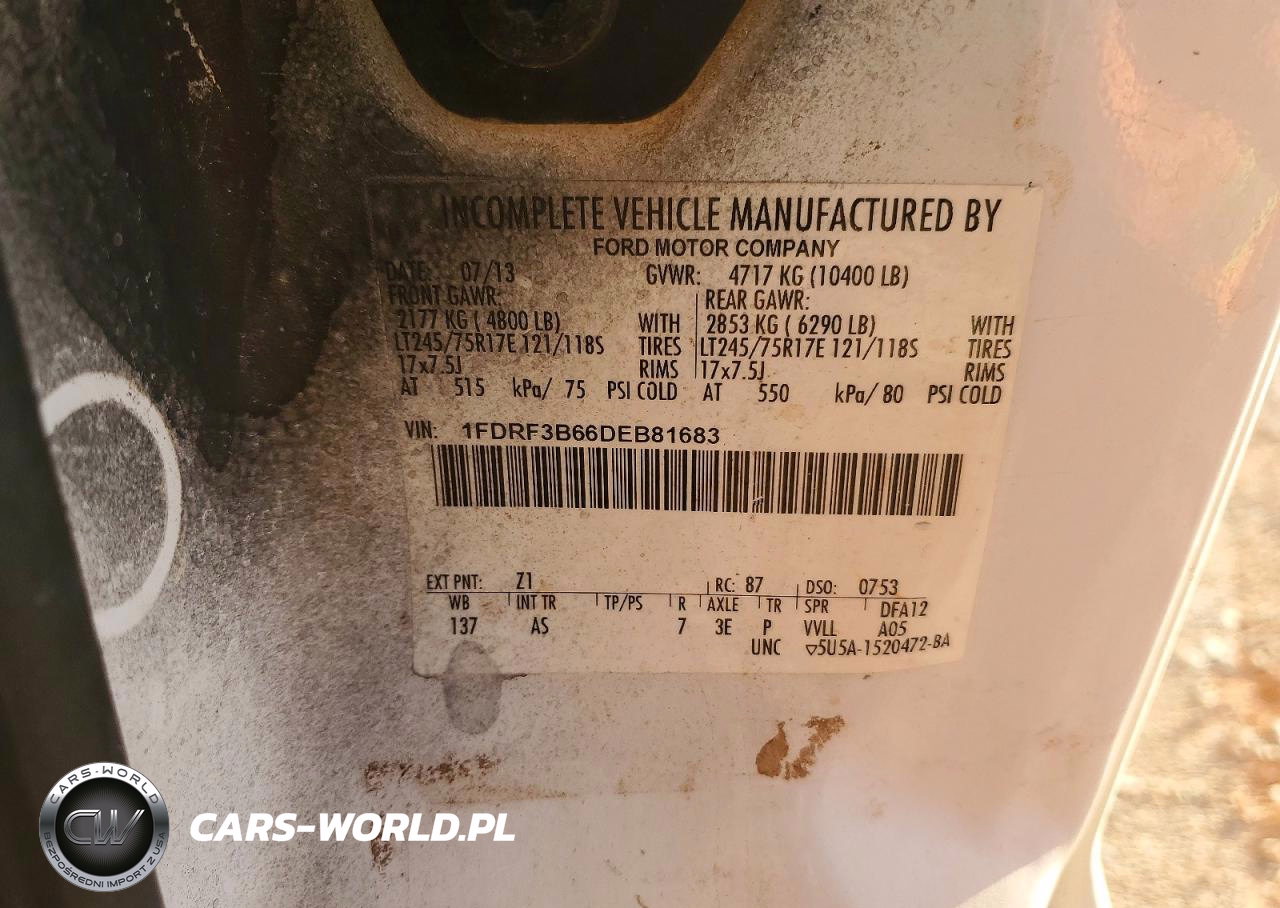 Copart Nr: C-98466615 VIN: 1FDRF3B66DEB81683 Port: Houston, TX