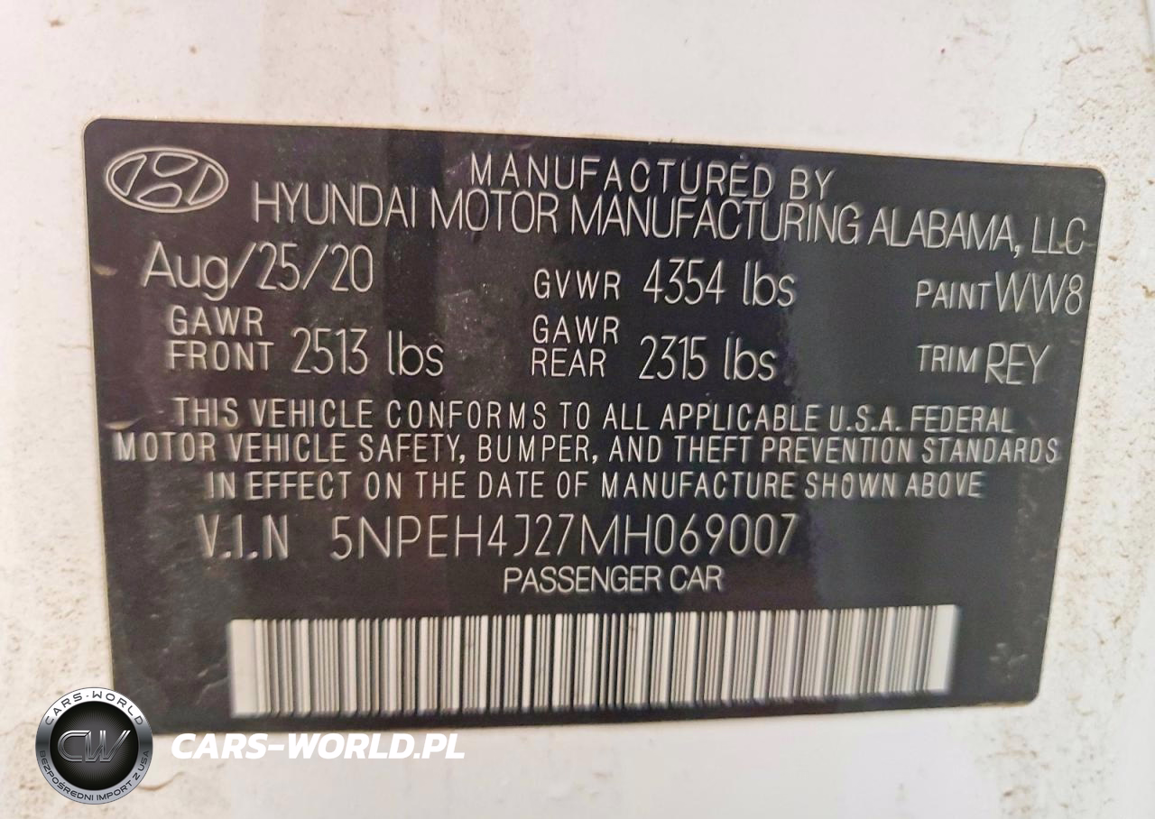 Copart Nr: C-98593475 VIN: 5NPEH4J27MH069007 Port: Indianapolis, IN