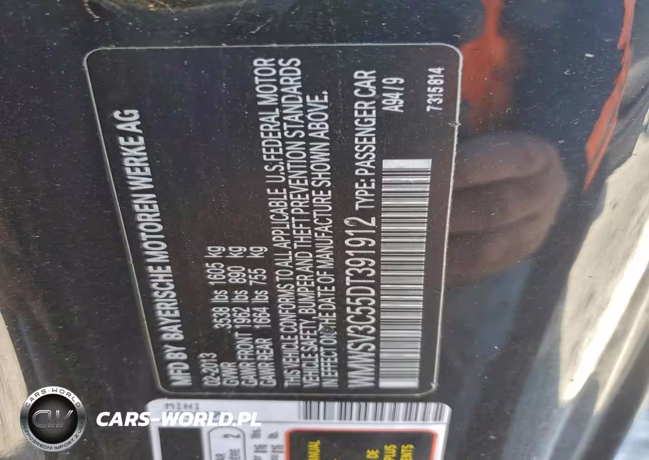 Copart Nr: C-98621705 VIN: WMWSV3C55DT391912 Port: Savannah, GA