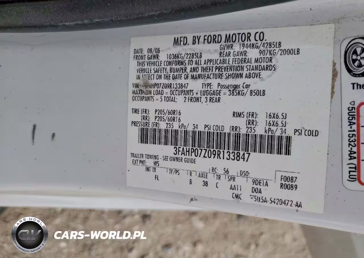 Copart Nr: C-98643645 VIN: 3FAHP07Z09R133847 Port: Houston, TX