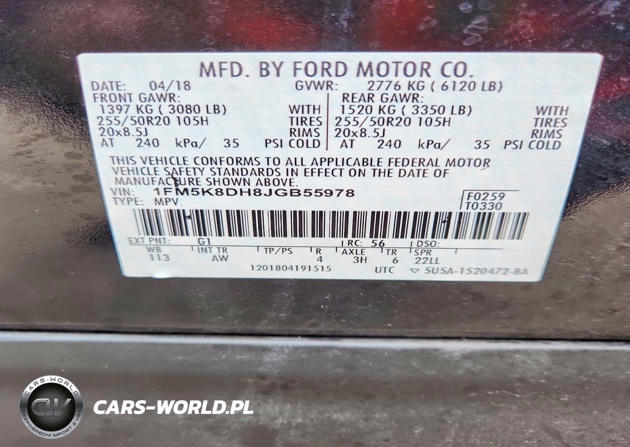 Copart Nr: C-98661365 VIN: 1FM5K8DH8JGB55978 Port: Indianapolis, IN