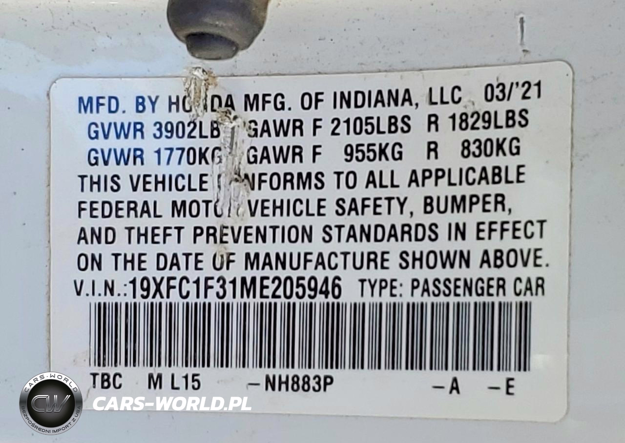 Copart Nr: C-98719405 VIN: 19XFC1F31ME205946 Port: Los Angeles, CA