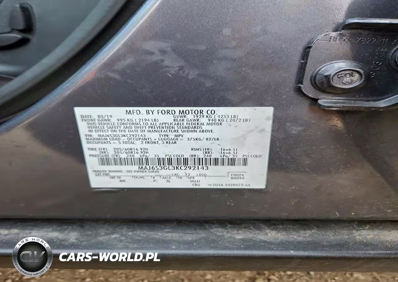 Copart Nr: C-98796955 VIN: MAJ6S3GL3KC292143 Port: Elizabeth, NJ
