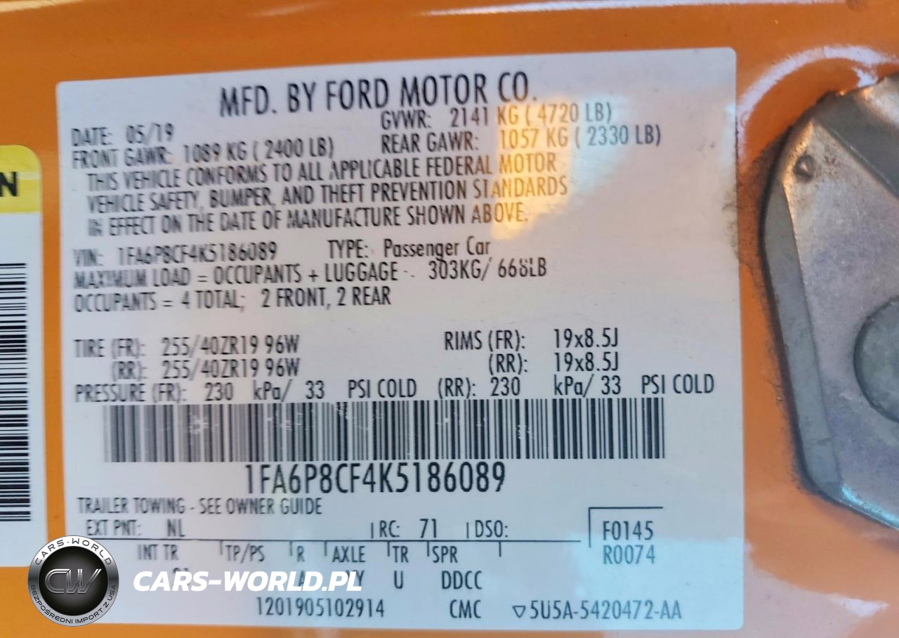 Copart Nr: C-98929855 VIN: 1FA6P8CF4K5186089 Port: Los Angeles, CA