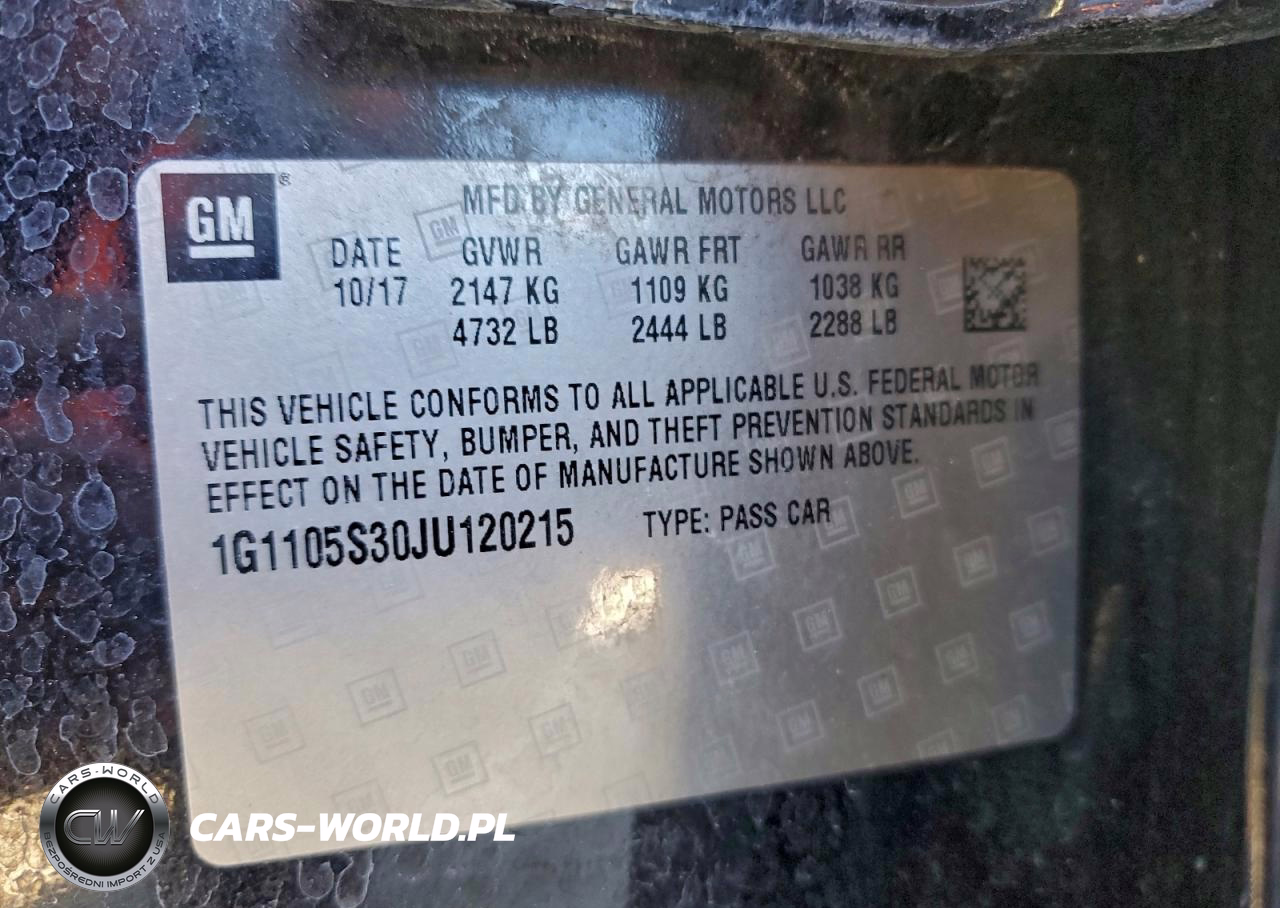 Copart Nr: C-98936655 VIN: 1G1105S30JU120215 Port: Savannah, GA