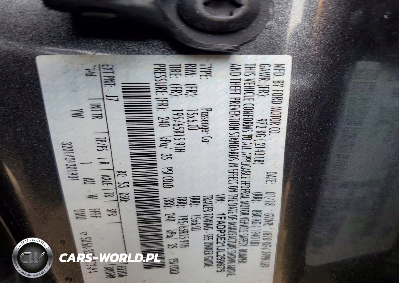 Copart Nr: C-98944205 VIN: 1FADP3E21JL259675 Port: Houston, TX