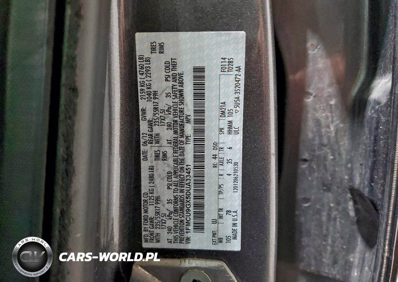 Copart Nr: C-98958725 VIN: 1FMCU9GX5DUA33451 Port: Elizabeth, NJ