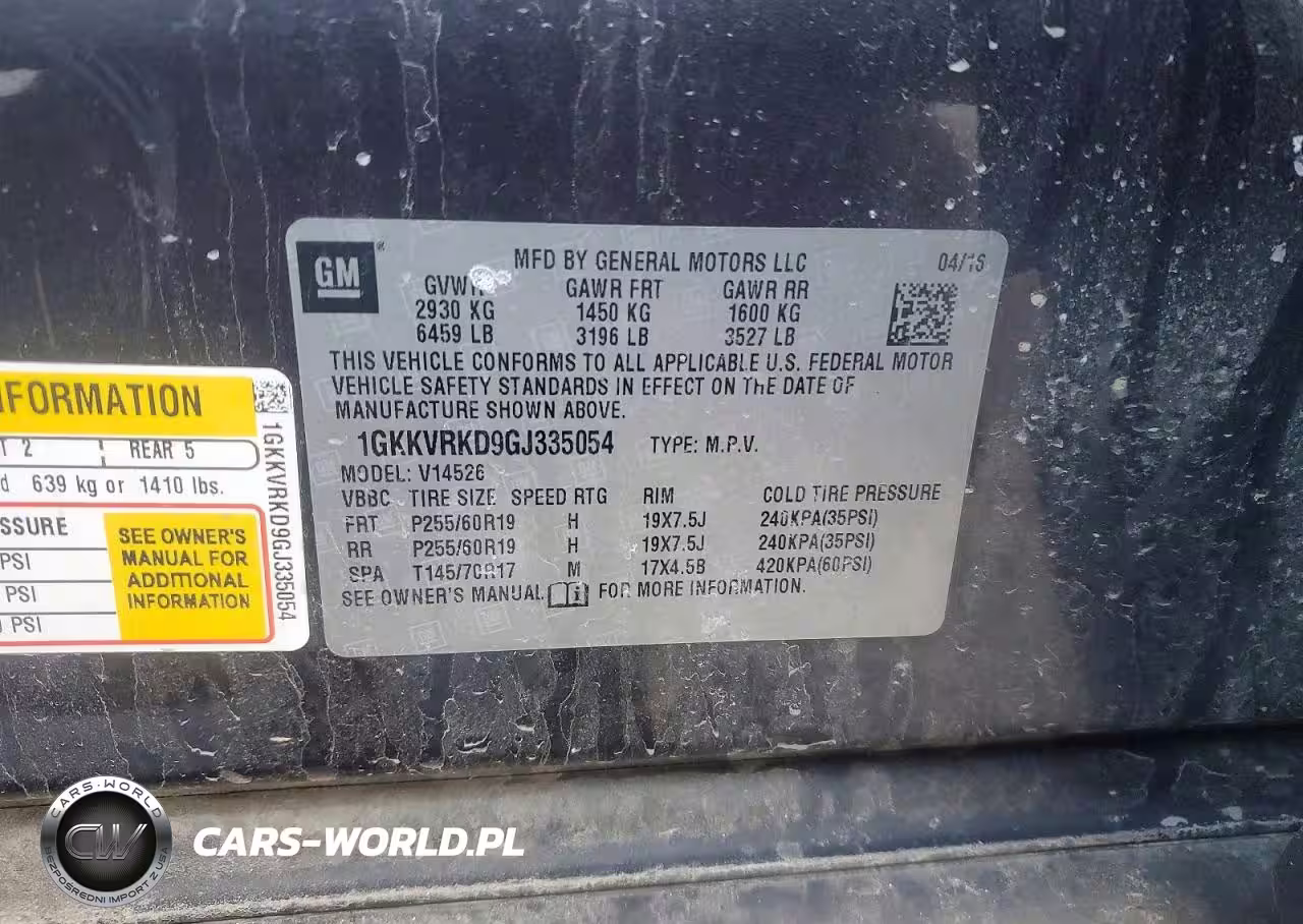 Copart Nr: C-98962515 VIN: 1GKKVRKD9GJ335054 Port: Elizabeth, NJ