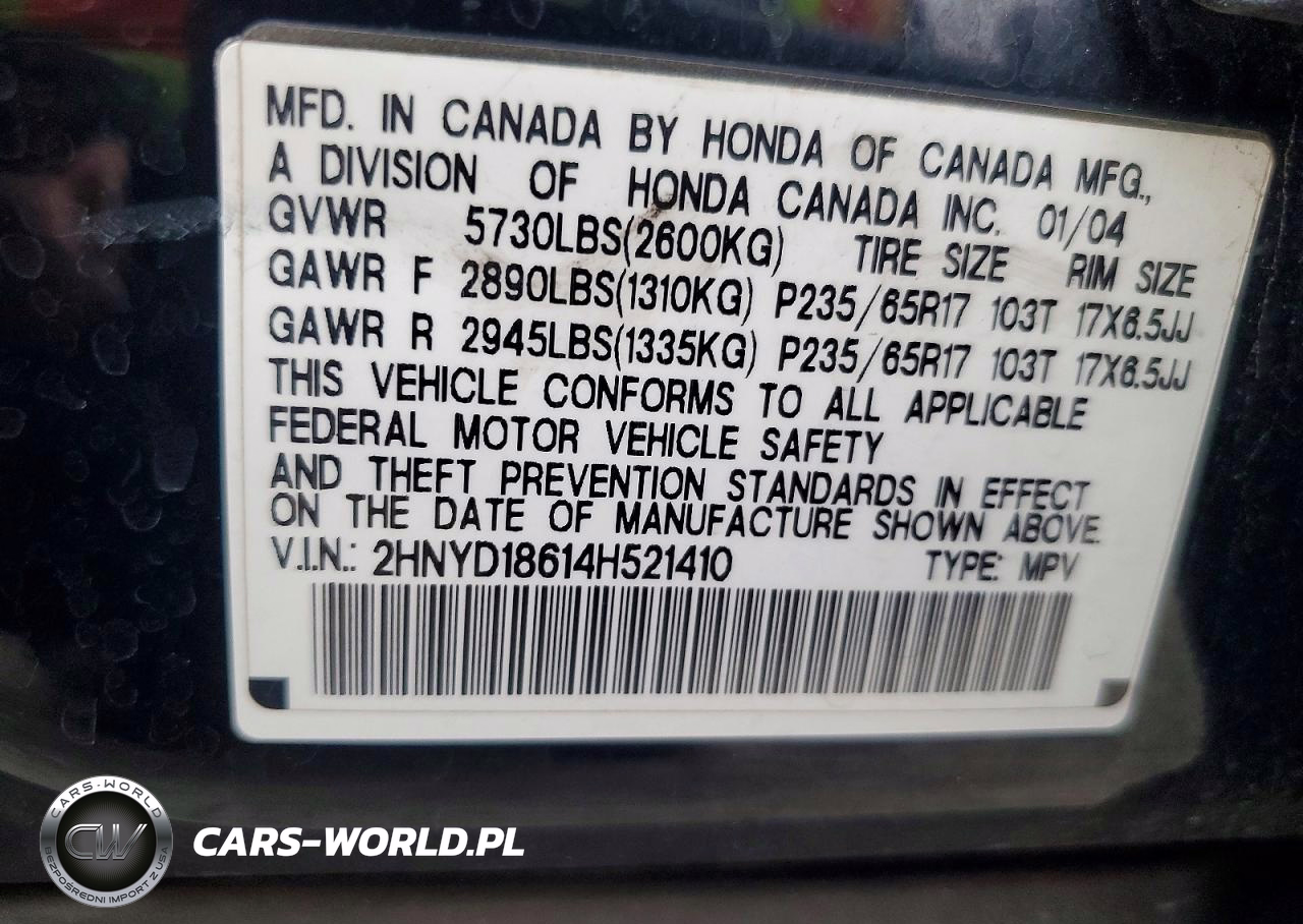 Copart Nr: C-98976345 VIN: 2HNYD18614H521410 Port: Los Angeles, CA