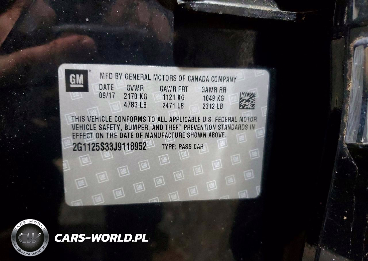 Copart Nr: C-98991795 VIN: 2G1125S33J9118952 Port: Elizabeth, NJ