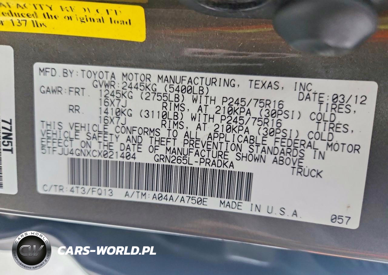 Copart Nr: C-99013385 VIN: 5TFJU4GNXCX021404 Port: Houston, TX