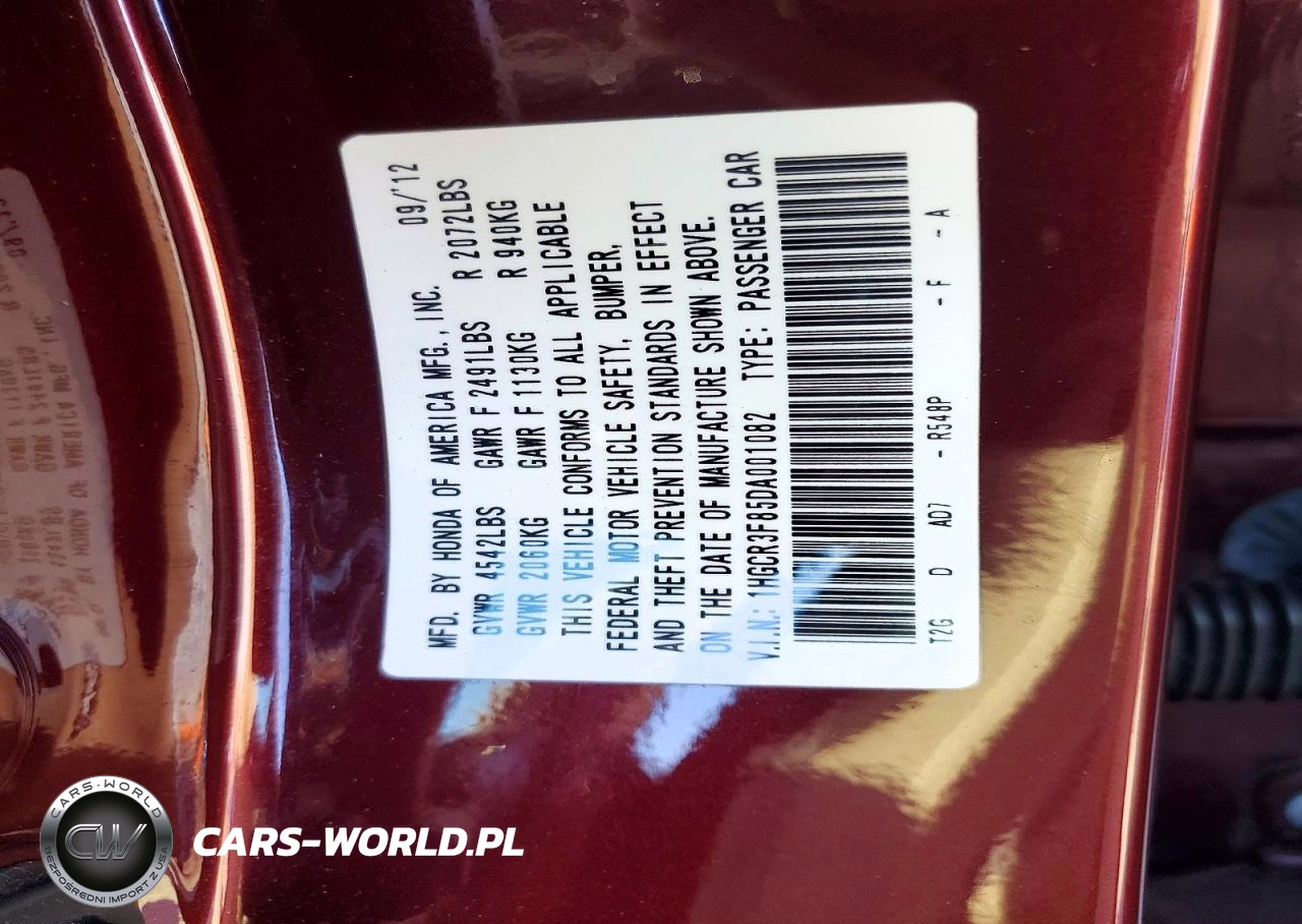 Copart Nr: C-99020885 VIN: 1HGCR3F85DA001082 Port: Los Angeles, CA