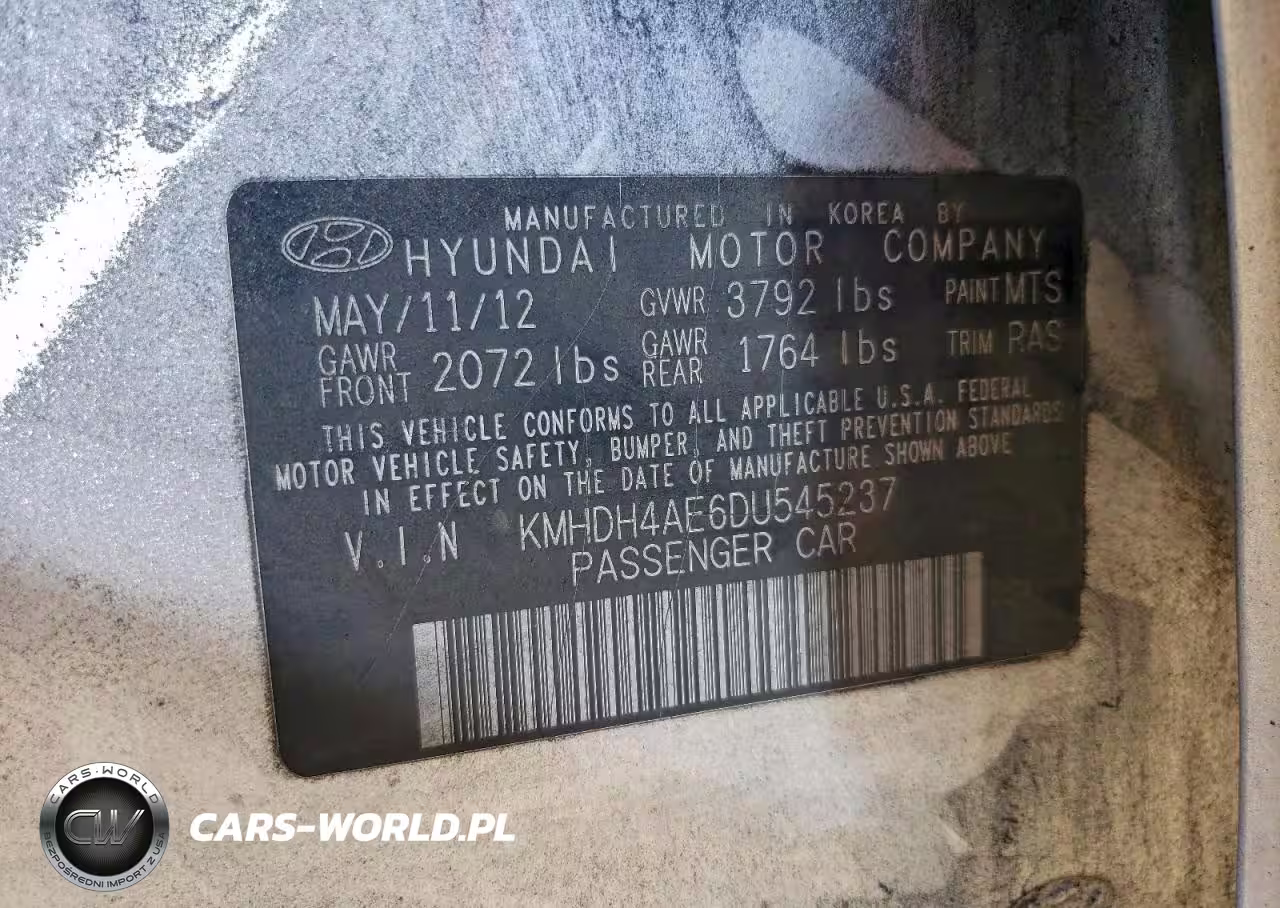 Copart Nr: C-99208875 VIN: KMHDH4AE6DU545237 Port: Savannah, GA