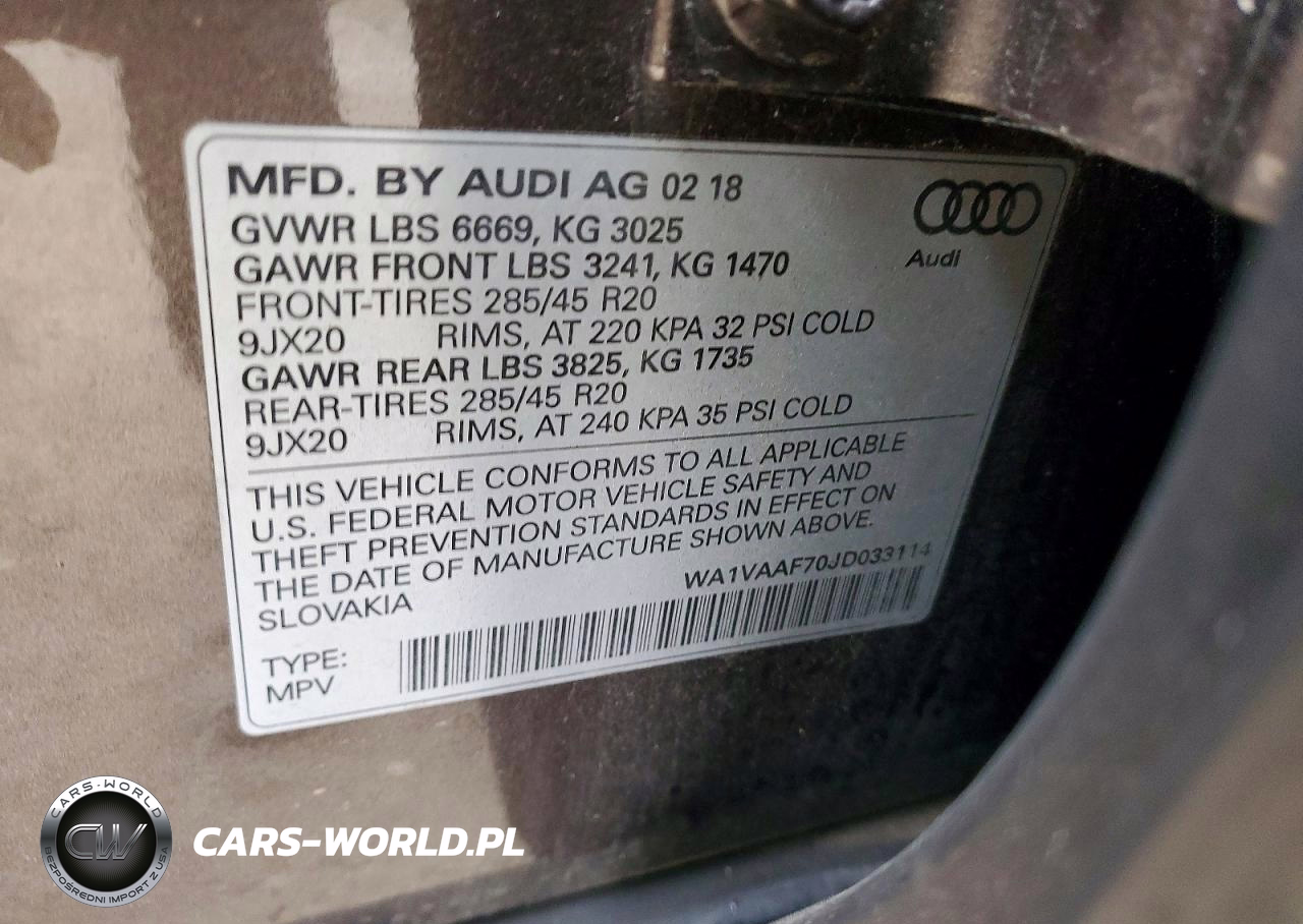Copart Nr: C-99459055 VIN: WA1VAAF70JD033114 Port: Elizabeth, NJ